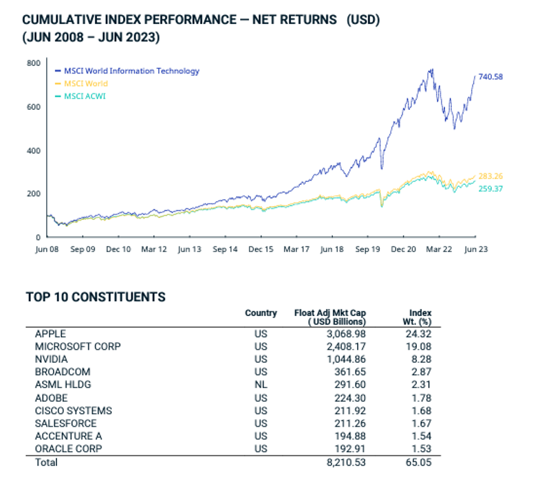 Si tratta di un parente stretto dell’indice MSCI World Information Technology, l’indice tecnologico di riferimento a livello globale.