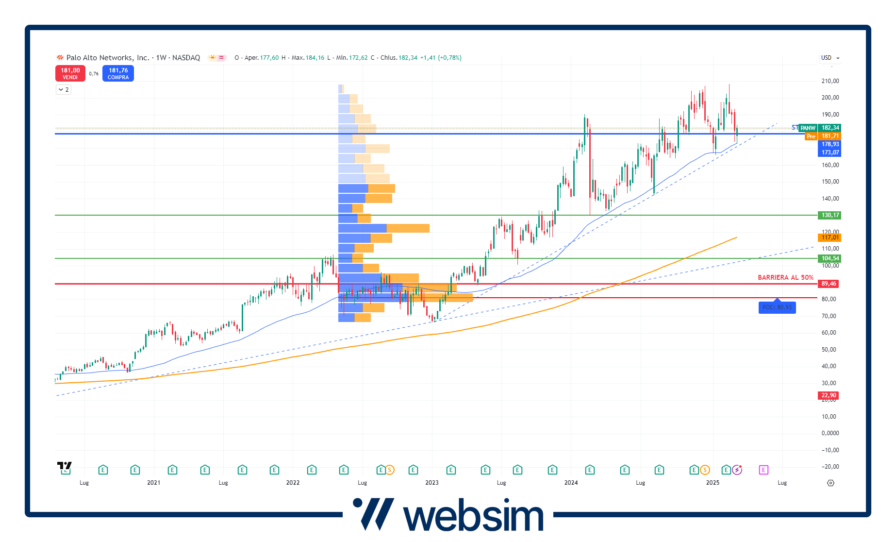 Palo Alto Networks offre piattaforme con firewall avanzati e soluzioni cloud per rafforzare tutti gli aspetti della sicurezza. L'azienda vanta una capitalizzazione di mercato di 118 miliardi di dollari.