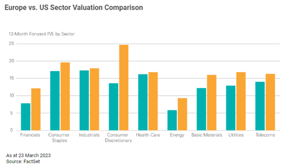 Ecco quindi che l’Europa torna sotto i riflettori per le sue potenzialità, con un’economia resiliente che ha superato senza inciampi la crisi bancaria culminata nel fallimento di fatto del Credit Suisse, che ora si sta avvantaggiando del calo dell’energia e delle altre materie prime e può beneficiare di una crescente propensione al consumo da parte degli europei dopo le gelate del Covid e della guerra.