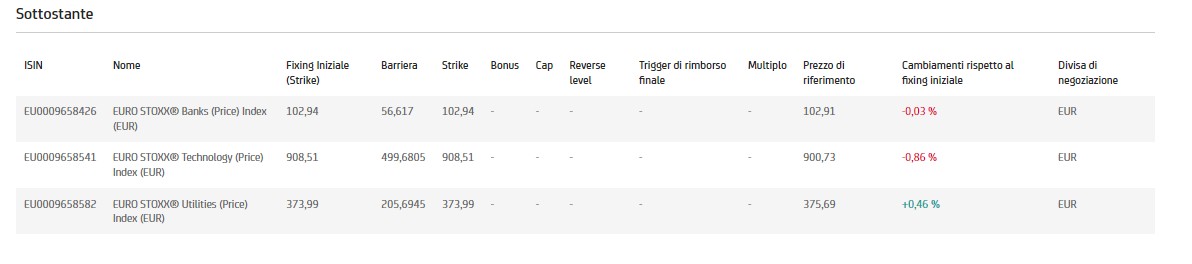 Per investire sul mercato azionario europeo Unicredit ha messo a punto un nuovissimo strumento che offre una combinazione particolarmente interessante fra redditività e protezione. Con il certificate DE000HC75VQ0, che ha durata di quattro anni, l’investitore può ottenere un rendimento del 7,44% mentre il capitale è protetto da una barriera al 55%. I sottostanti sono l’Euro Stoxx Banks, l’Euro Stoxx Technology e l’Euro Stoxx Utilities, un tris di indici settoriali particolarmente apprezzabile per l’equilibrio che esprime, dato che mette insieme titoli ciclici come i tech con titoli difensivi come le utilities, e in più ci sono le banche che stanno beneficiando di una crescita della redditività tipica delle fasi di alta inflazione.