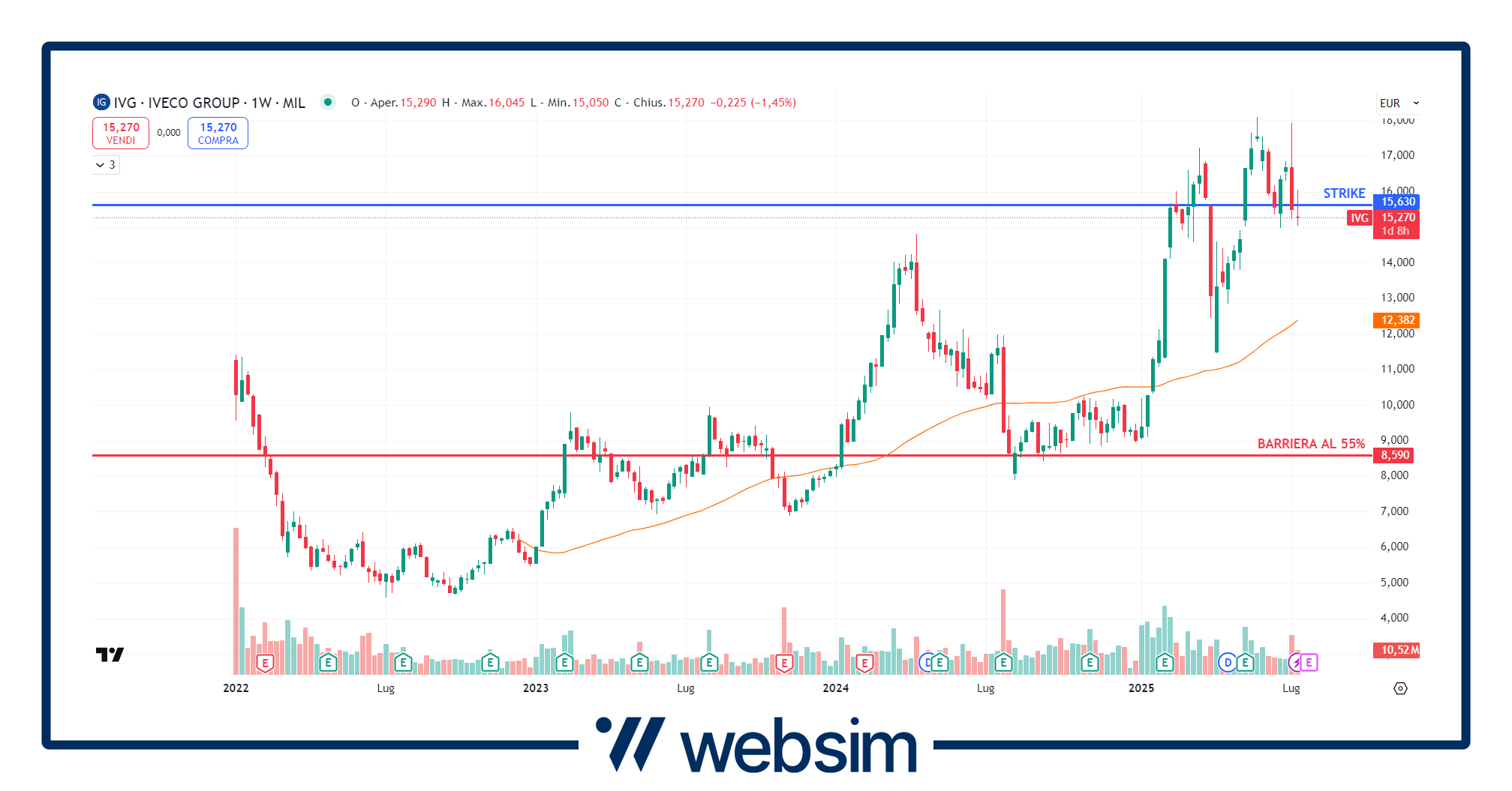 Su Leonardo la barriera al 55% è a 26,27 euro, livelli di inizio 2025. Il prezzo strike per il titolo è stato fissato a 47,78 euro.
