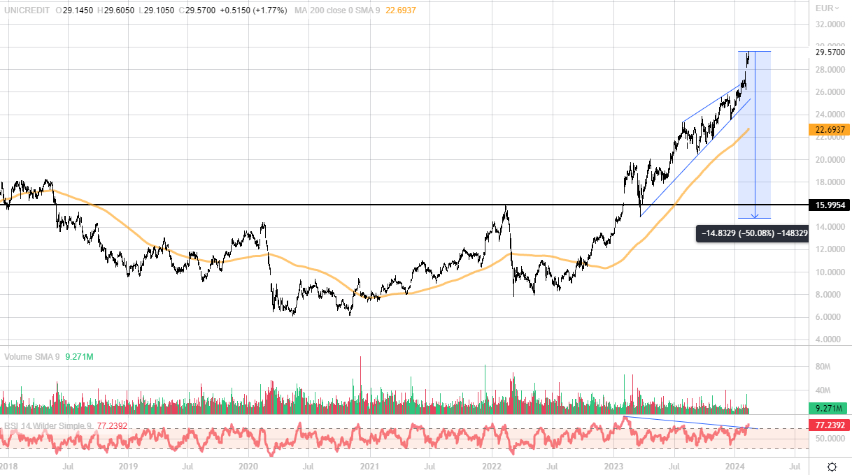 A tal proposito, va ricordato come lo scenario di “tassi alti a lungo” non spaventa il comparto banking, che nella crescita del costo del denaro ha trovato nuova linfa per aumentare la marginalità. La poca fretta – per usare un eufemismo – da parte delle banche centrali di abbassare i tassi rappresenta quindi un’ottima news per Unicredit.