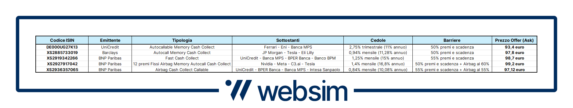 Nell'articolo di oggi vediamo una selezione di Cash Collect attualmente sul mercato a sconto, con le loro principali caratteristiche, per aiutarti a individuare quelli più adatti alle proprie strategie di portafoglio e propensione al rischio.