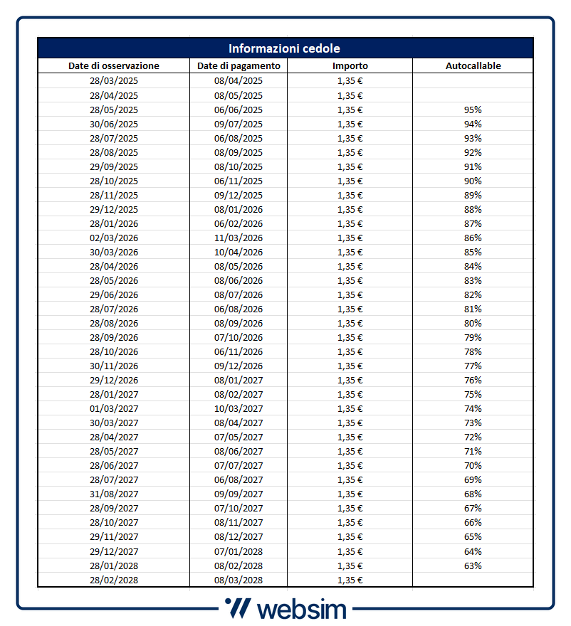 La scadenza è di tre anni (28 febbraio 2028) e come tutti i Cash Collect saranno due le possibilità: