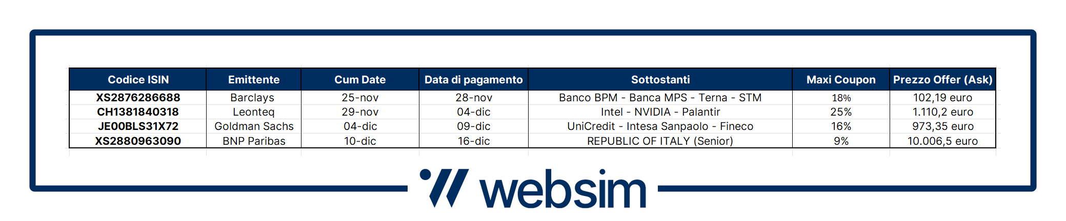 Man mano che ci si avvicina alla fine dell’anno, cresce l’urgenza tra gli investitori di trovare soluzioni in grado non solo di generare rendimenti, ma che permettano anche di ottimizzare la propria posizione fiscale. Tra le diverse opzioni disponibili, i Maxi Cash Collect spiccano particolarmente per la loro efficienza fiscale, con le loro ricche cedole iniziali, spesso incondizionate, che si rivelano utili soprattutto per chi ha minusvalenze in scadenza e necessita di strumenti per la compensazione fiscale.