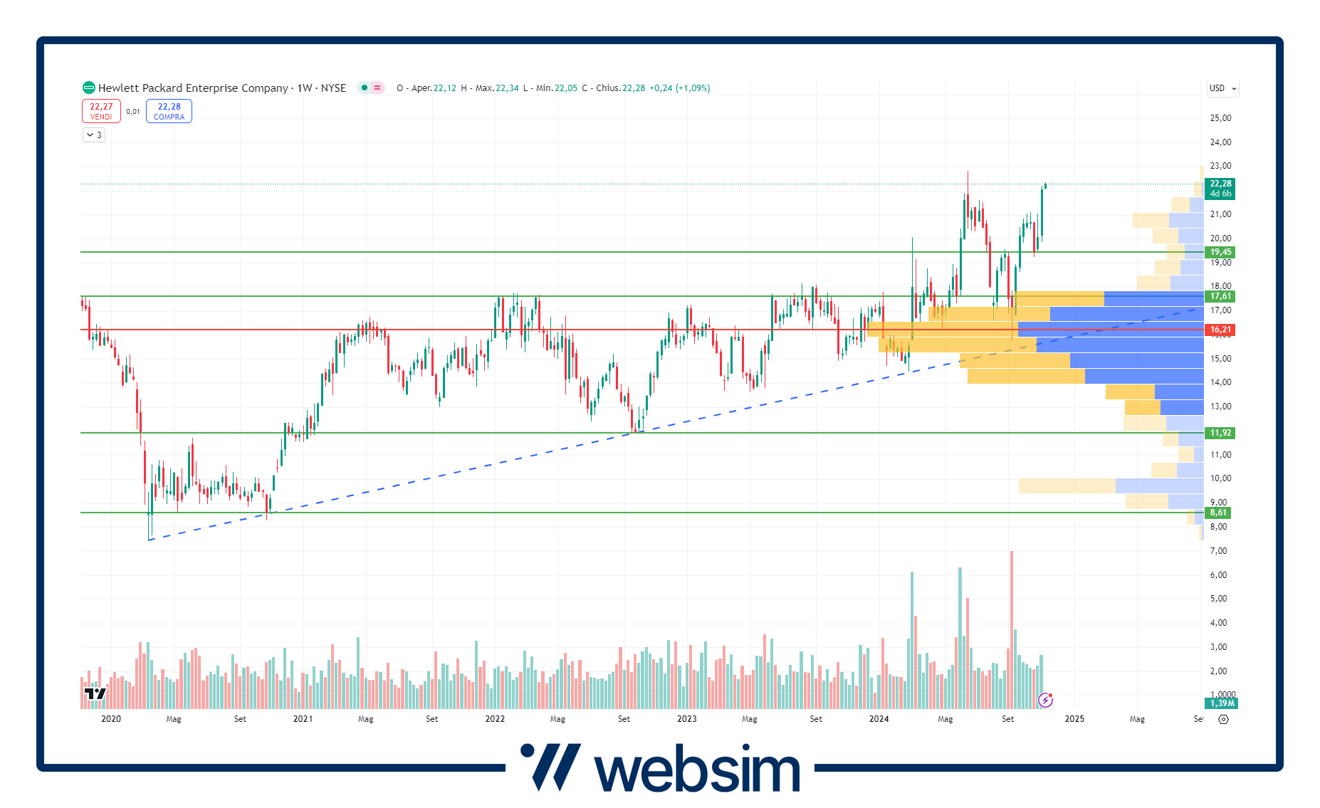 Con un P/E sull’utile 2025 di 12 volte, HPE appare ben sottovalutata: attualmente il P/E medio dell’S&P 500 è di 22 volte.