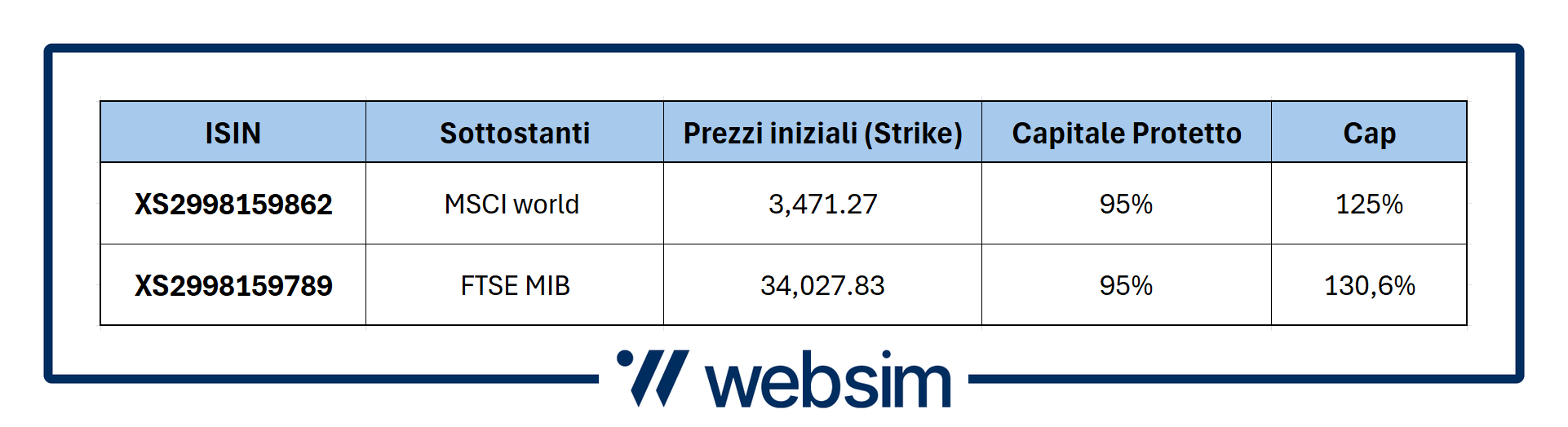 - Uno per investire sull'indice globale MSCI World (ISIN XS2998159862) con Cap al 125%,