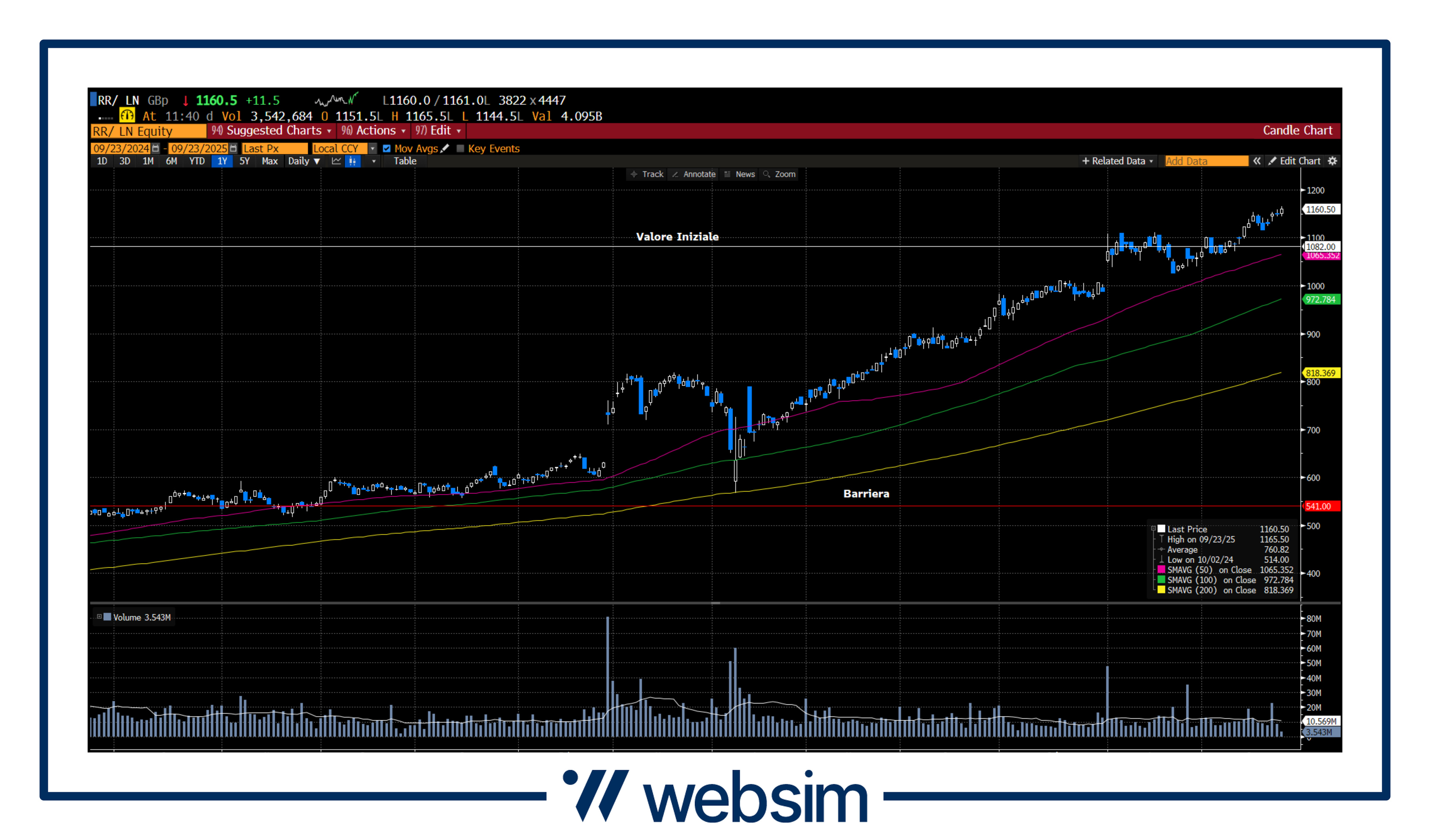 Rolls-Royce quota attualmente in area 1.160,5 GBp, con un valore iniziale fissato a 1.082 GBp ed una barriera prevista a 541 GBp.