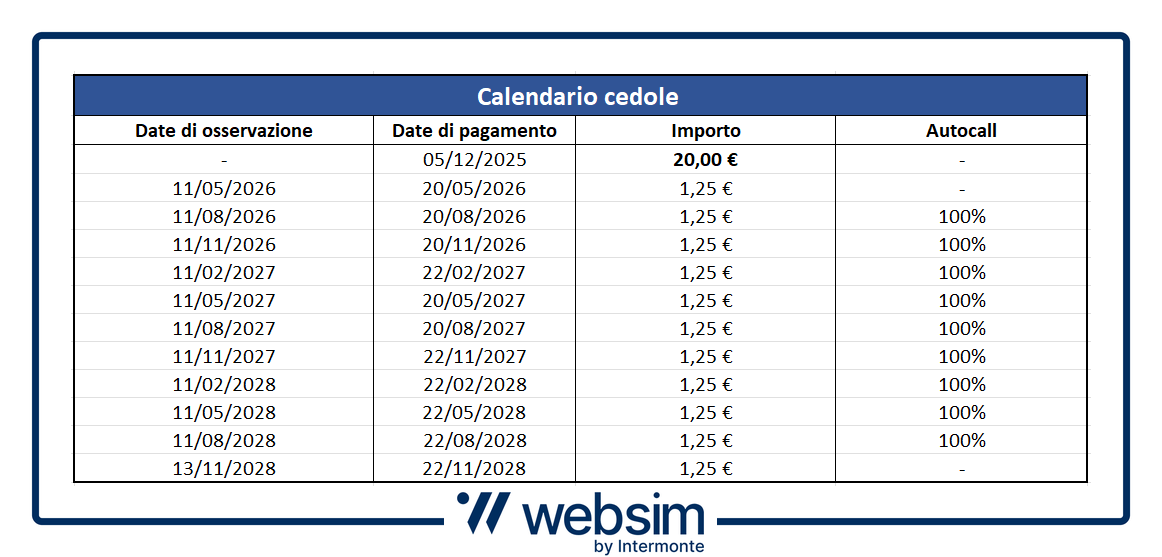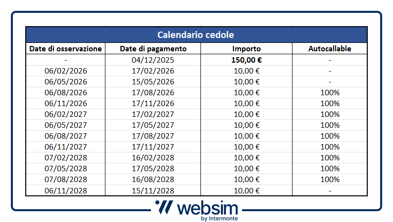- Rimborso anticipato: Autocall da agosto 2026, trigger fisso al 100%