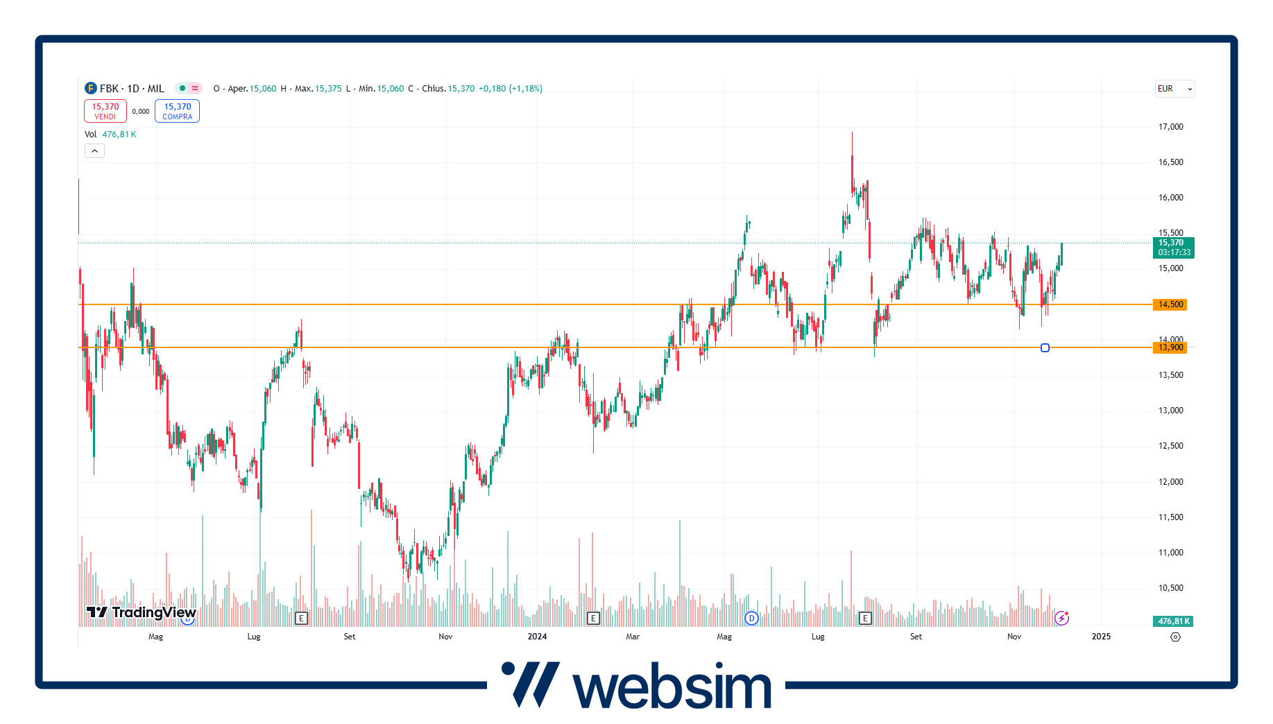 Ultimo titolo del basket è Fineco, altro grande player del settore bancario italiano che, in linea con gli altri player del panorama italiano, nel corso dell’anno attuale ha fatto registrare una solida performance del +11,65% circa. Gli ultimi risultati comunicati sono stati abbastanza in linea con le aspettative, con una crescita dell'utile netto su base annua guidata da commissioni solide e minori accantonamenti nonostante i costi operativi aumentati in doppia cifra, anche a causa di maggiori spese di marketing. Quadro generale guidato dall’exploit registrato nell’acquisizioni di nuovi clienti, anche grazie alla piattaforma di trading-only Fineco X, e da una decisione sul capitale in eccesso rimandata al nuovo anno, anche a causa delle prospettive di crescita molto più forti. Il titolo scambia attualmente in area 15,37 €, sostenuto da due importanti supporti in area 14,50 € e 13,90 €.