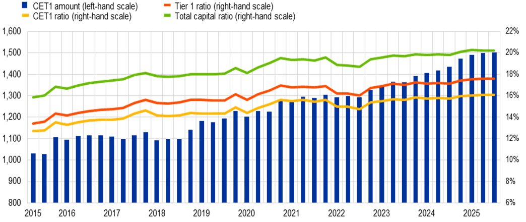 Figura 4: Serie storica del capitale CET1 e dei rapporti patrimoniali.