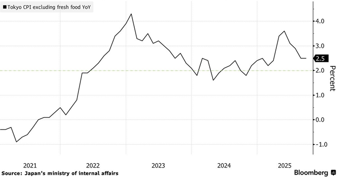 Serie storica dell'inflazione giapponese. Fonte: Bloomberg