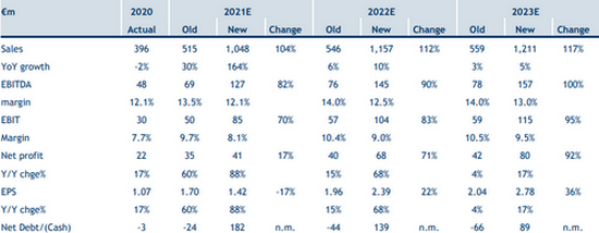 Le stime sulle vendite 2022/2023 sono state aumentate rispettivamente del 6% e dell'8%, l'Ebitda dell'1% e del 4%.