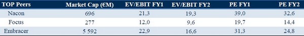 Come dimostrano le immagini sottostanti, il multiplo EV/EBIT di Digital Bros , calcolato sulle stime del 2021, risulta pari a 10,1, mentre quello delle imprese comparabili è superiore: Nacon 21,3, Focus 12, Embracer 22,9.