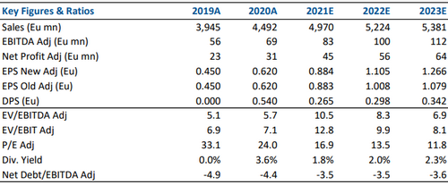 Abbiamo limato le nostre stime sulle vendite del 2021 per riflettere la maggiore incertezza, tuttavia manteniamo invariate quelle dell'Ebitda, in linea alla guidance. Stimiamo una redditività più alta, incorporata nella nostra stima sull'utile per azione del 2022/23.