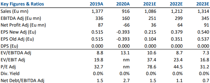 Le attuali stime di consenso sul fatturato 2021 2021 sono di 1.140 milioni di euro, anche se questo include ancora il business dei profumi (circa 50 milioni di euro), che deve essere detratto.