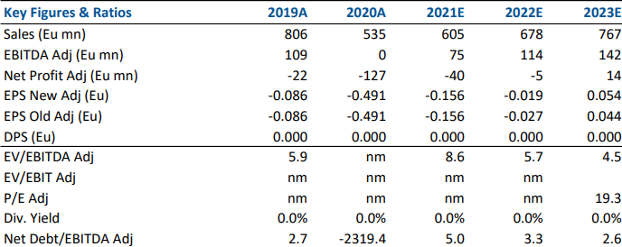 Posizione finanziaria netta: Indebitamento Netto 2024 a 20/30 mln (da circa 100 mln attesi a fine 2021) con cash flow generato per Euro 70 milioni principalmente da economia.
