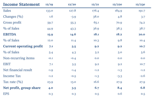 Per il 2022, gli analisti vedono ricavi da vendite pari a 184,9 milioni di euro, rispetto ai 176,4 milioni del 2021.
