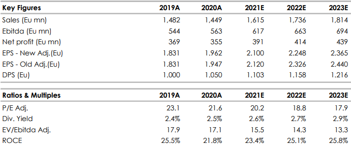 I dati sono nel complesso inferiori alle nostre attese e ci portano a ridurre le stime. Di conseguenza manteniamo un giudizio prudente e abbassiamo il target price da 48 a 47 euro.