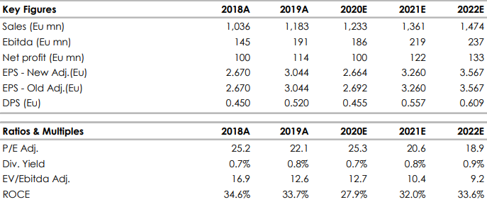 Alla luce dei robusti risultati abbiamo maggiore visibilità sulle nostre stime per l'intero 2020. Riteniamo che l'azienda sia in un'ottima posizione per sfruttare la tendenza alla digitalizzazione. Inoltre, riteniamo che l'approccio prudente nell'ambito M&A, attraverso l'acquisizione di società altamente focalizzate sulla tecnologia, continuerà a migliorare la crescita di Reply. La società gode di una posizione di liquidità molto elevata.