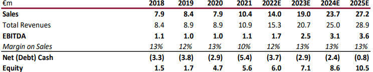 Per il 2022, gli analisti stimano ricavi totali pari a 15,3 milioni di euro, cifra che si confronta con i 10,9 milioni del 2021.
