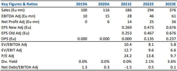 L'EBITDA è pari a 28 milioni, è quindi raddoppiato rispetto ai 14 milioni di Euro al 31 dicembre 2020 e ben oltre la Guidance di 26 milioni di Euro precedentemente indicata. Il consensus stimava 26,5 milioni.