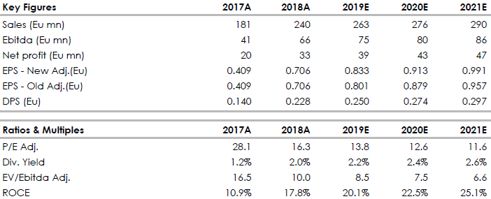 Il Risultato operativo e l’Utile netto ammontano rispettivamente a 29,6 milioni di Euro e 19,1 milioni di Euro, pari al 16,4% e 10,5% dei Ricavi.