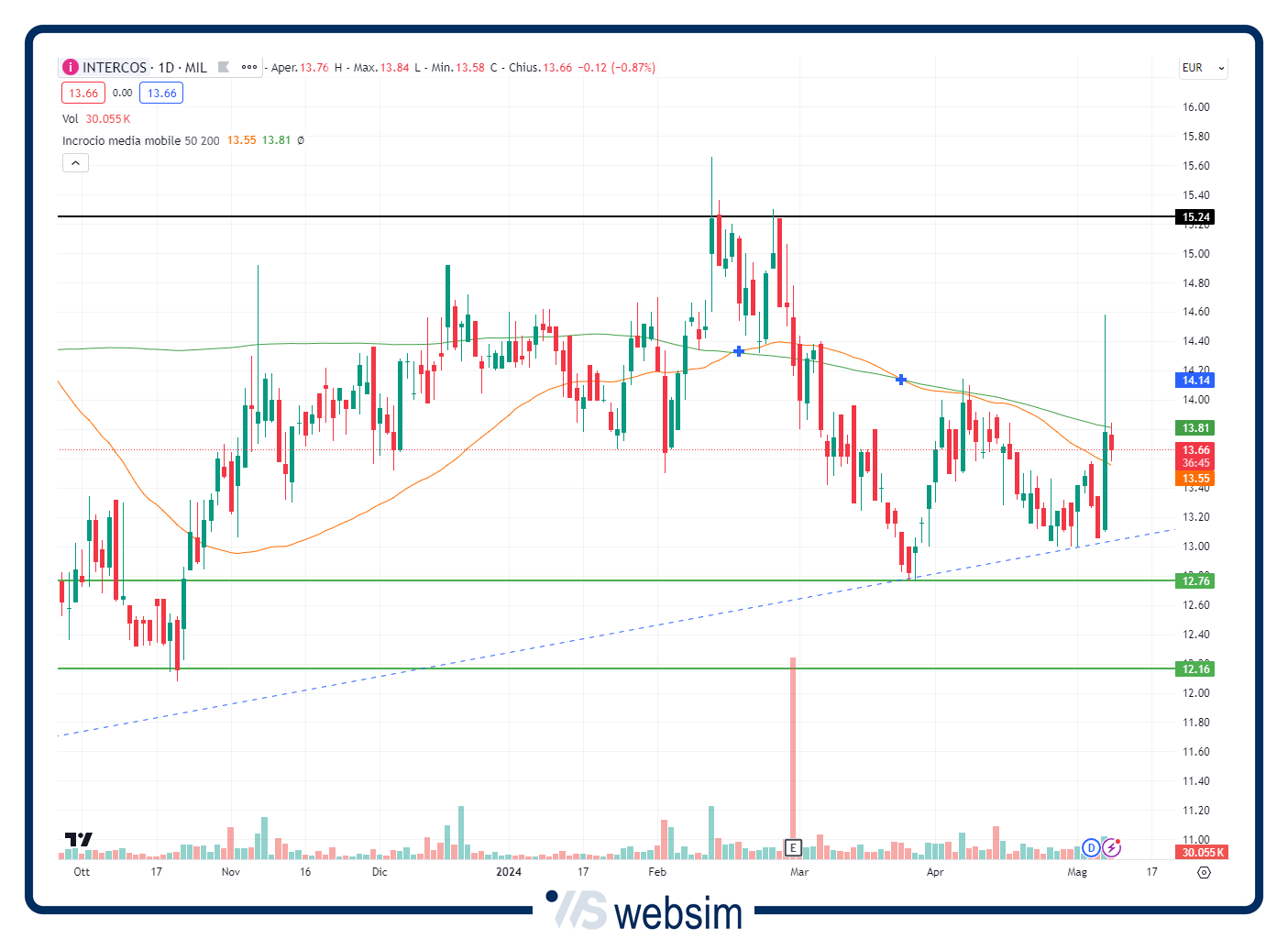 INTERCOS [ICOS.MI] (13,6 eu, Long da 13,5 eu) -0,7%. Seduta di consolidamento degli acquisti della vigilia. Confermata la solidità dell'area supportiva a quota 12,7 eu. Il titolo si trova poco sotto la media mobile a 200 giorni. Rimane interessante il potenziale upside.