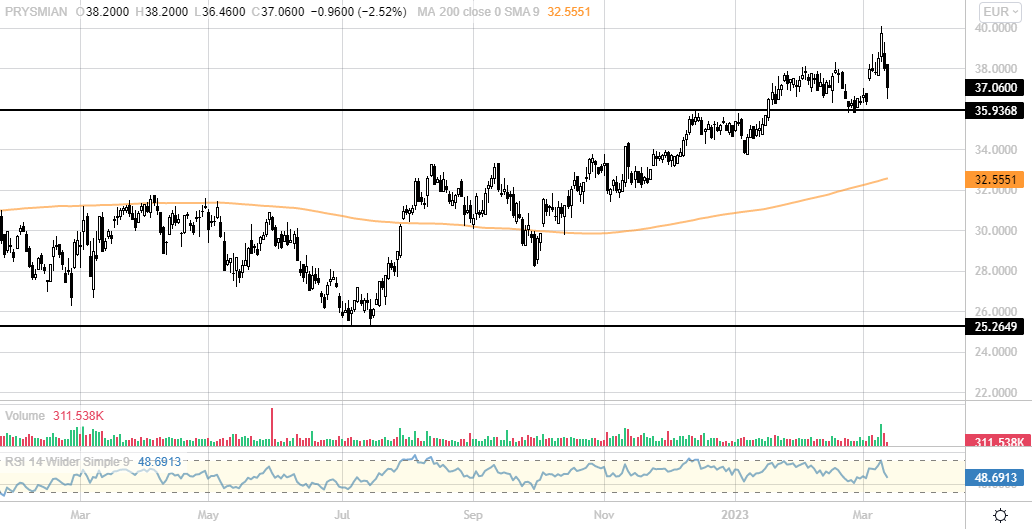 PRYSMIAN [PRY.MI] (37 eu, Long da 36 eu) -2,5%. Torna nei pressi di 36 eu. Buon livello di ingresso.