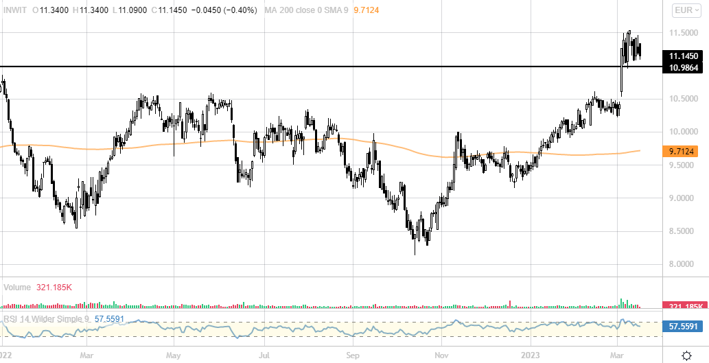 INWIT [INWIT.MI] (11,15 eu, Long da 11,51 eu) -0,36%. Mantiene tanta forza relativa dopo il break importante degli 11 eu. Titolo presente nella rubrica titoli sexy di Websim.it.
