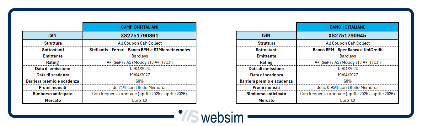 La nuova emissione di All Coupon Cash Collect di Barclays si compone di due prodotti, entrambi focalizzati sul mercato italiano.