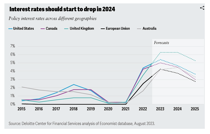 Questo balzo della redditività è in gran parte dovuto all’aumento dei tassi di interesse deciso dalla Bce, che ha permesso alle banche di ampliare il margine di interesse (differenza fra tassi attivi e tassi passivi). Che succederà ai bilanci delle banche se, come previsto dalla maggior parte degli economisti, già nel 2024 la Bce inizierà a tagliare i tassi?