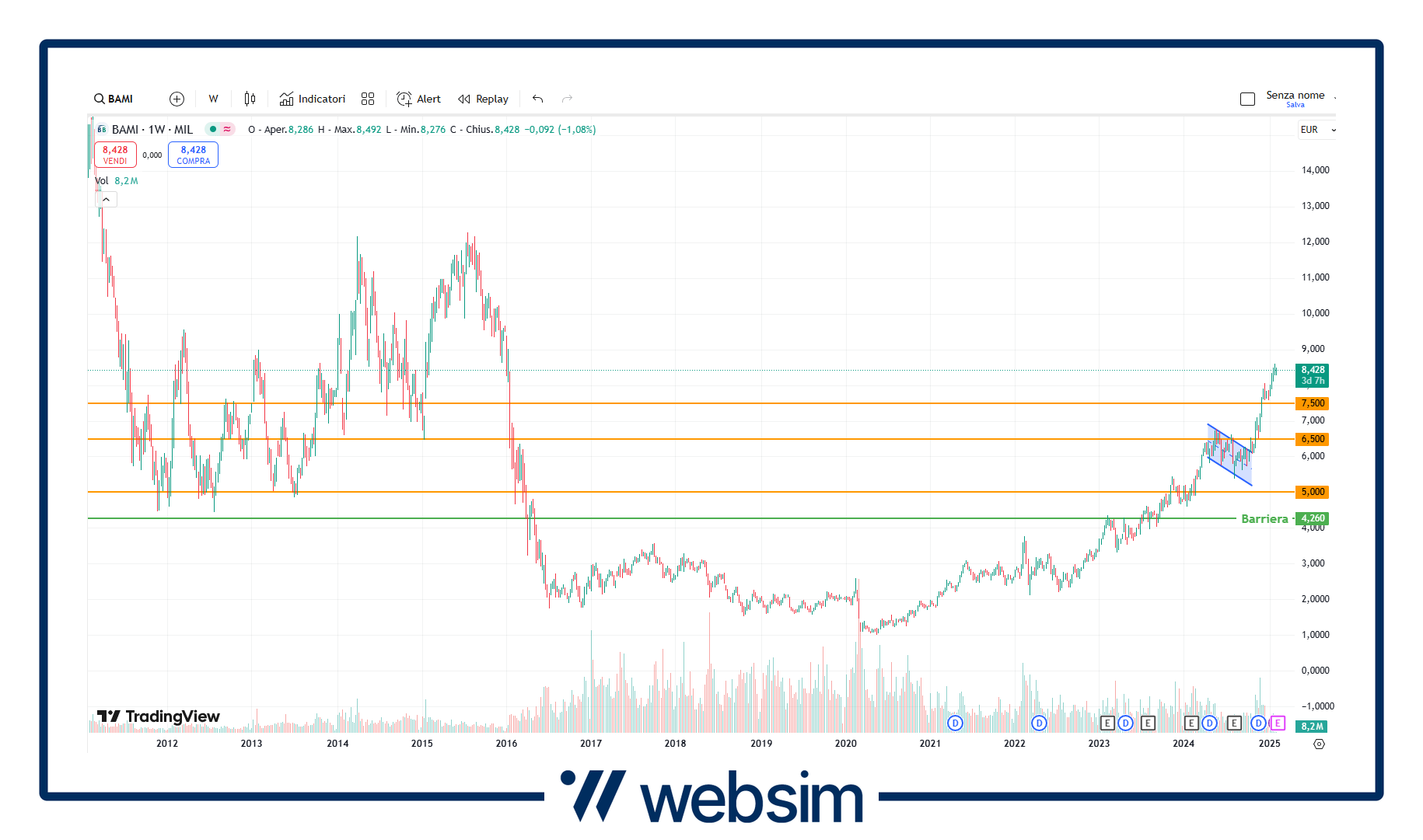 Dopo un anno record appena chiuso con una brillante performance del +60%, Banco BPM inizia bene anche il nuovo anno mettendo a segno una performance del +8,60% da inizio 2025, a dimostrazione della solidità del trend di crescita di cui è protagonista, insieme a tutti gli altri player del settore. L’istituto deve ancora comunicare i dati conclusivi per lo scorso anno, attesi per la prossima settimana con aspettative di netta crescita rispetto ai precedenti, trovandosi allo stesso tempo al centro dei riflettori date le ormai note offerte pubbliche di acquisto lanciata verso Anima e quella invece partita da Unicredit verso di loro. Entrambe le offerte hanno avuto un’accoglienza non ottimale da parte degli addetti ai lavori, ritenute come non adeguate e, mentre BAMI sta lavorando su mosse difensive per proteggere il suo status autonomo, il mercato attende che Unicredit rivaluti le condizioni della propria offerta. Il titolo scambia attualmente in area 8,4 EUR, sostenuto da tre importanti supporti posti a 7,5 EUR e 6,5 EUR ed un ultimo, più profondo, in area 5 EUR. Da evidenziare l’unica barriera prevista dal prodotto settata a 4,26 EUR.