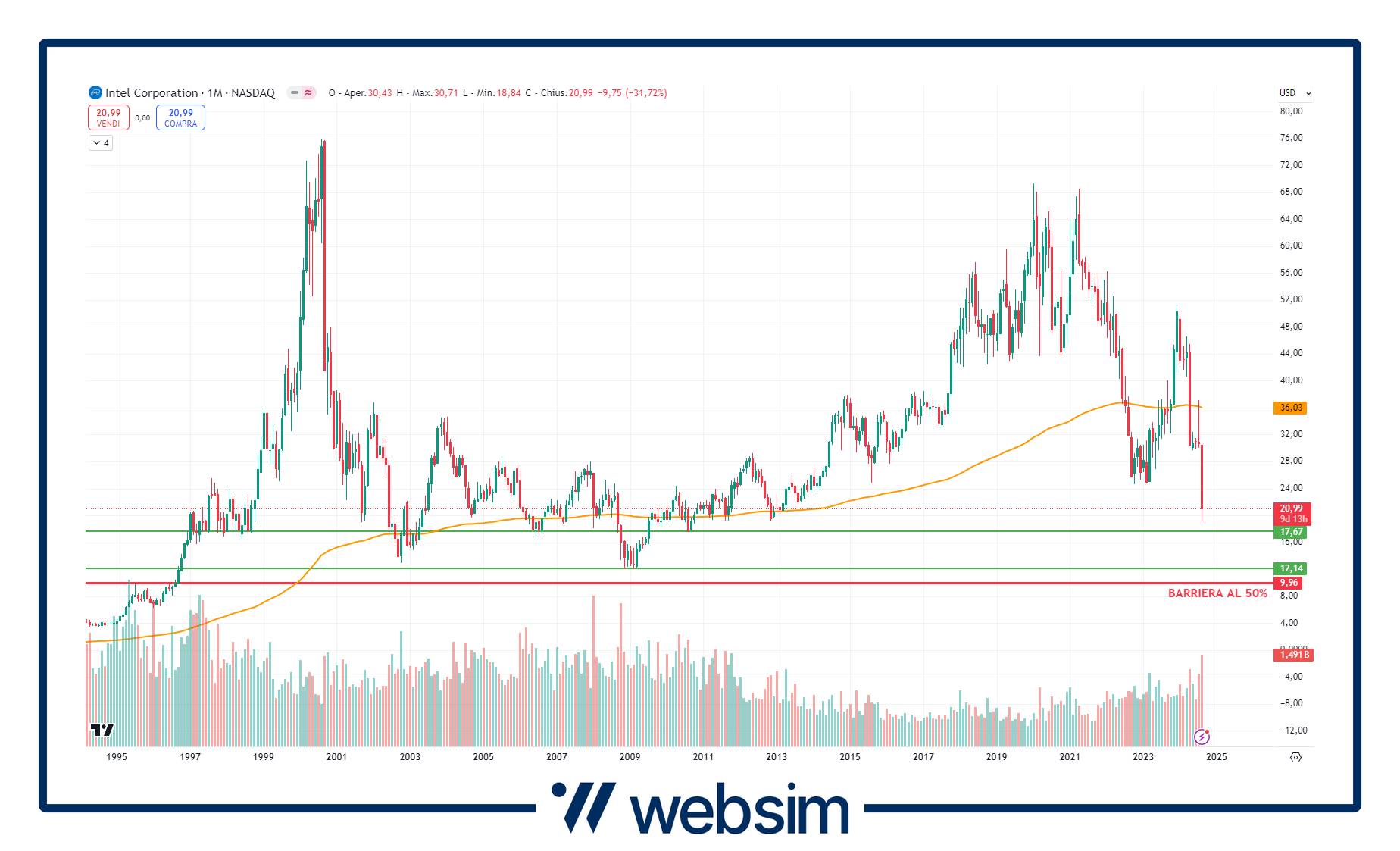 Discorso un po' diverso per l'ultimo titolo del paniere ISIN IT0006764473, Intel. Il titolo da inizio anno mostra infatti una flessione del -56%, passando così dai 49$ di inizio anno agli attuali 21 dollari ad azione. Sull'andamento di Intel hanno pesato i suoi deludenti risultati trimestrali ma soprattutto le sue deludenti prospettive per il prossimo futuro soprattutto in settori chiave come il business dei data center e quello dei personal computer. Ma non solo, perché gli investitori sono stati sorpresi anche dall'annuncio della sospensione dei dividendi come parte di una più ampia strategia di riduzione dei costi. Questa mossa, unita ai piani di licenziamento di migliaia di lavoratori, non fanno altro che sottolineare le sfide finanziarie e operative che Intel sta affrontando.