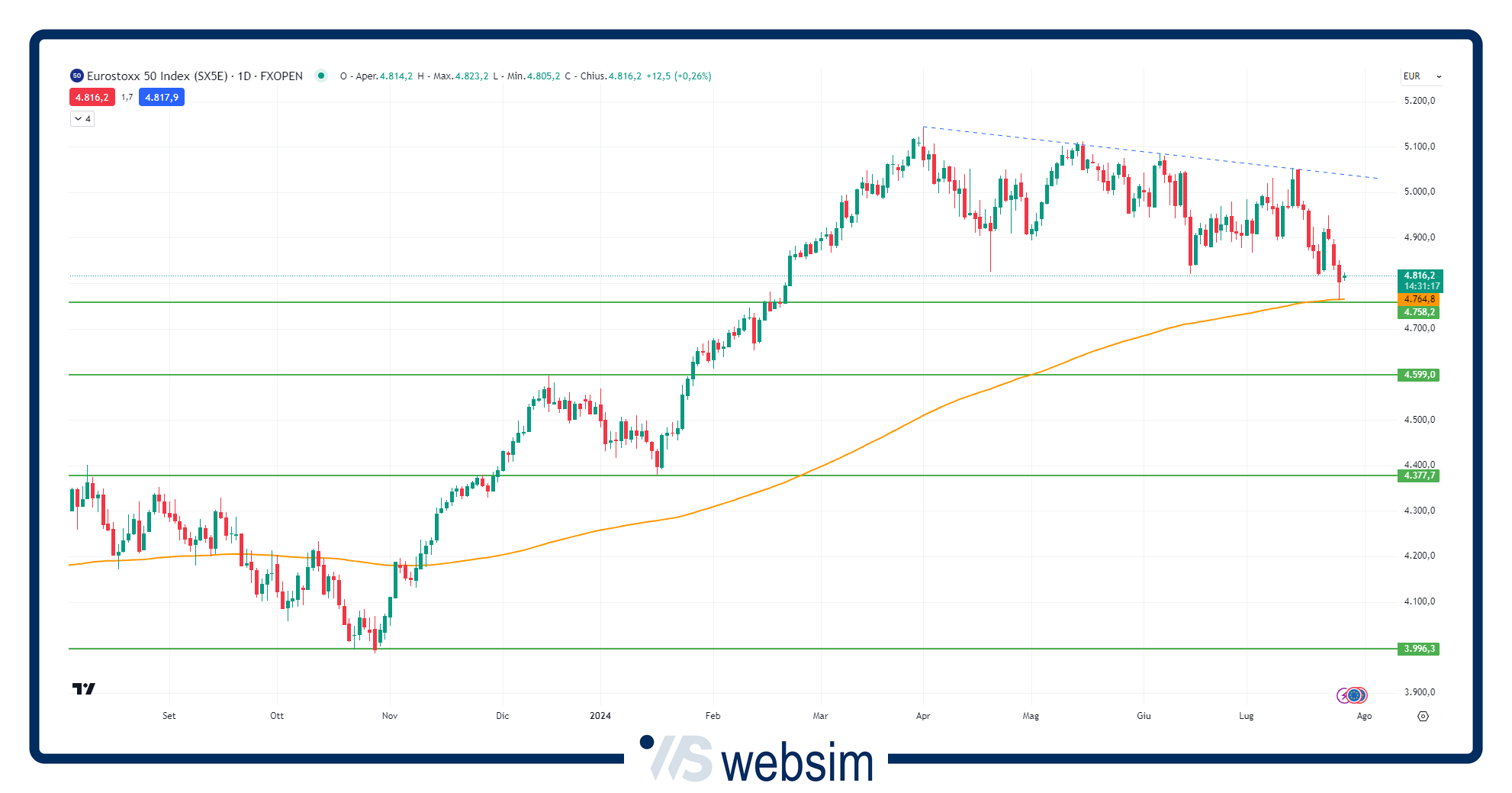 EuroStoxx50 al test della media mobile a 200 giorni