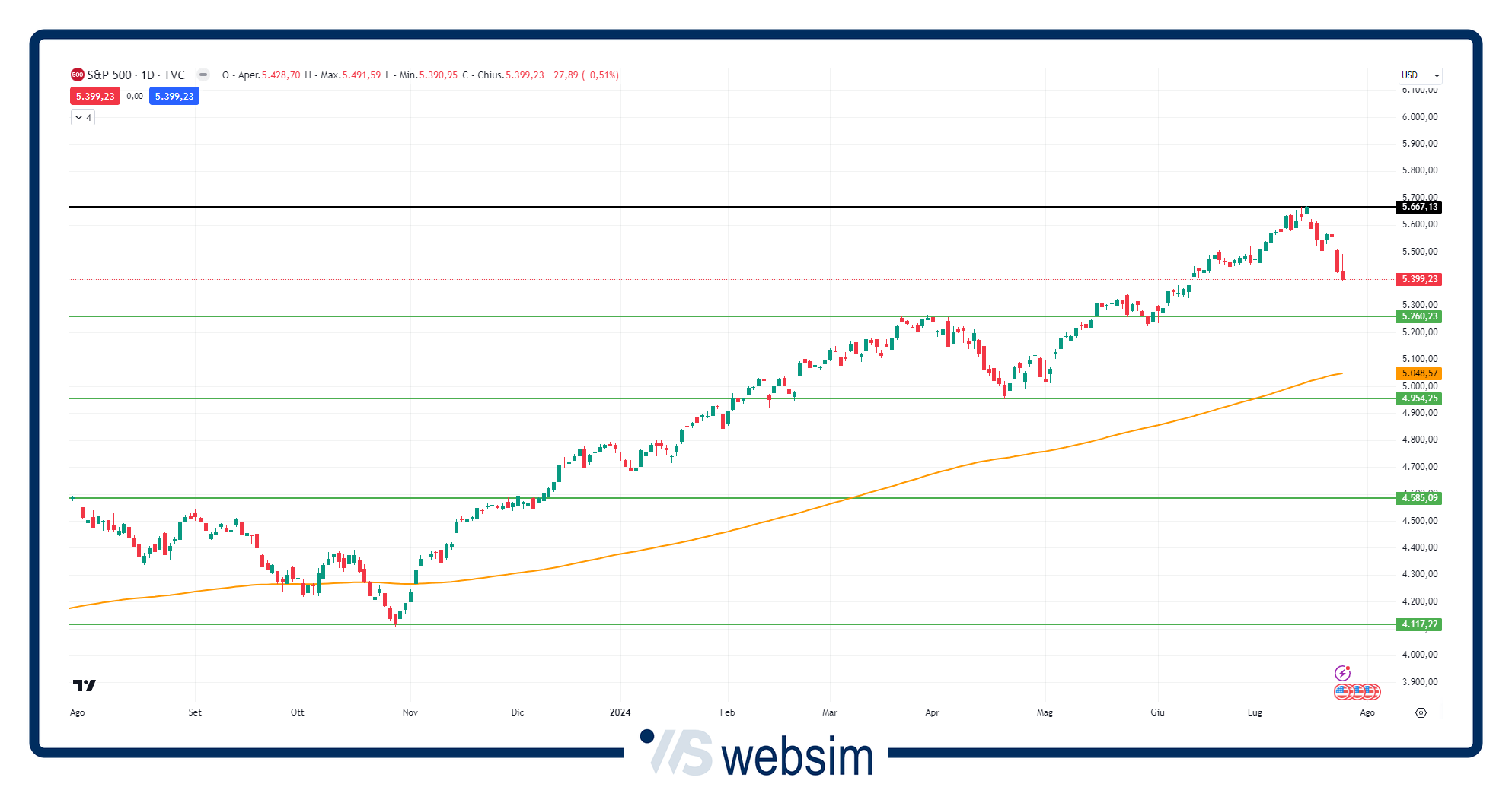 S&P 500, da monitorare la tenuta dei 5.200 punti