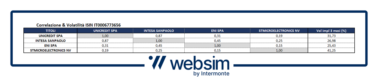 Il certificato ISIN IT0006773656 (13,56% annuo) punta invece su UniCredit, Intesa Sanpaolo, Eni e STM. La presenza di STMicroelectronics, aumenta sia il potenziale di rendimento sia la volatilità complessiva del basket. Il premio mensile più elevato (1,13% contro 0,74%) compensa questo maggiore rischio.