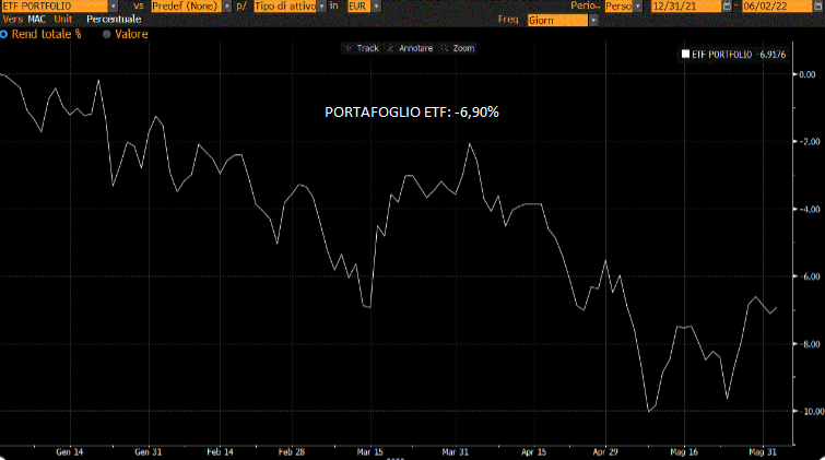 Rendimento Portafoglio Modello ETF da 1 Gennaio al 03 Giugno 2022: -6,90%.