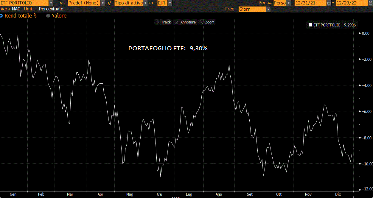 Rendimento Portafoglio Modello ETF da 01 Gennaio al 30 Dicembre 2022: -9,30%.