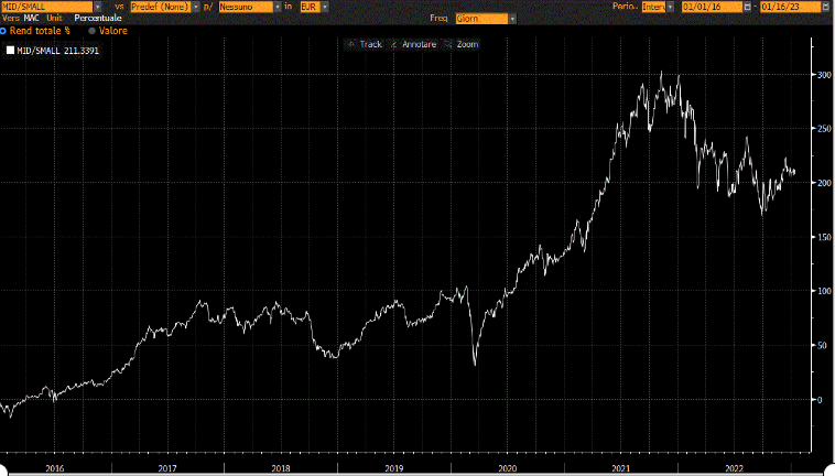 f) ritorno di interesse sulle mid/small caps dopo il pesante ritracciamento del 2022 e considerando che un'altra forte sottoperformance dell’indice STAR (-29% nel 2022) rispetto al FTSEMIB (-13,30%) è ora meno probabile.