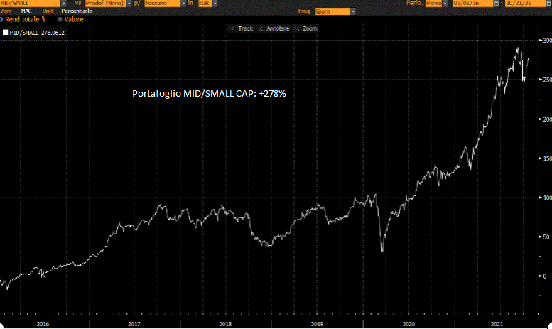 Il grafico seguente presenta la performance del Portafoglio nel periodo 1 Gennaio 2016 - 22 Ottobre 2021: +278,0%