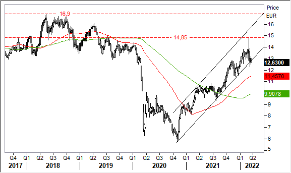 Analisi Tecnica. Il rally partito con lo scoppio del conflitto in Ucraina si è infranto intorno ad area 15,0 euro, in corrispondenza dei top pre-pandemia. Da lì è partita la fase correttiva che consideriamo fisiologica e utile per scaricare gli eccessi di breve.
