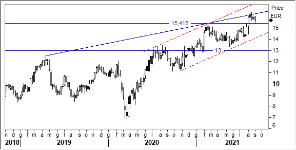 Si tratta di un set di dati positivo che ci consente di rafforzare il giudizio fondamentale INTERESSANTE con target price a 16,80 euro. Graficamente, l'uscita dalla banda 13-15,40 euro, che ha veicolato il movimento per circa sei mesi, ha fatto scattare nuove indicazioni di forza.