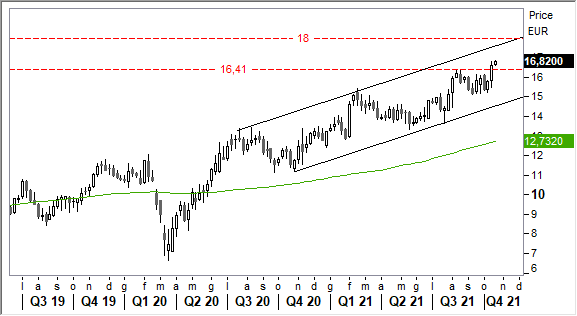 Graficamente, la tendenza di fondo rimane saldamente rialzista e spiegata bene dal canale crescente sotto evidenziato. L'uscita dalla banda 13,0-15,40 euro, che ha veicolato il movimento per circa sei mesi, ha fatto scattare nuove indicazioni di forza. Ulteriori spinte rialziste sono attese su piena rottura dei precedenti top assoluti in area 16,40 euro.