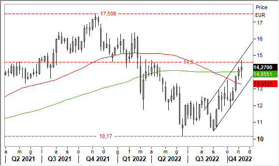 Operatività. Confermiamo la view positiva di lungo periodo, tuttavia lo strappo di questi giorni verso 14,60 euro ha consentito di prendere profitto sulla strategia di trading attivata a 13,10 euro. Nuovi livelli nella scheda tecnica.