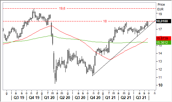 Graficamente, dai minimi del 2020 la tendenza ha imboccato la strada del rialzo. Un primo segnale di riequilibrio è giunto con la chiusura del gap-down aperto nel range 14-15 euro lo scorso anno in occasione dello scoppio della pandemia. Rinnovati segnali di spinta arriveranno con la piena rottura di area 18 euro. Obiettivo finale del movimento intorno a 19,50 euro.