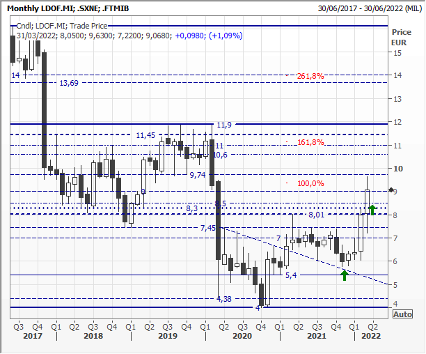 Graficamente, dai minimi toccati nel 2020 durante la prima fase della pandemia (4,38/4,0 euro) è in corso un recupero, che negli ultimi 2 mesi ha trovato maggior brio. Ci aspettiamo che la tendenza prosegua, seppur con qualche pausa fisiologica, in direzione di zona 10,0 euro in prima battuta, e probabilmente verso 12 euro, top del 2019, come target finale.