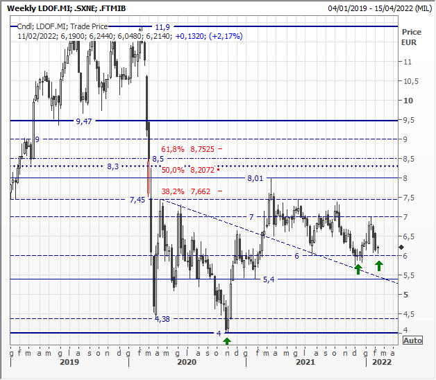Graficamente, dai minimi toccati nel 2020 durante la prima fase della pandemia (4,38/4,0 euro) è in corso un recupero difficoltoso. I supporti recentemente testati in zona 6,0/5,50 euro hanno innestato una decisa reazione. L'obiettivo "normale" rimane sui top segnati a marzo 2021 in area 8,0 euro.