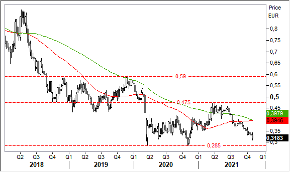 Operatività. Per l'analisi Tecnica di Websim una chiusura sotto 0,33 euro farà scattare lo stop loss prudenziale, ma ci prepariamo a rientrare in acquisto in caso di discesa verso 0,29 euro. Dettagli nella scheda di analisi tecnica.