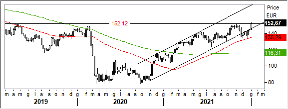 Operatività. Rafforziamo la visione positiva. Sfruttare lo scenario per comprare. Incrementare la posizione con la prima chiusura sopra 153 punti per target successivo verso 197/200 punti. Solo una discesa sotto area 116 punti rischierebbe di invertire la tendenza.
